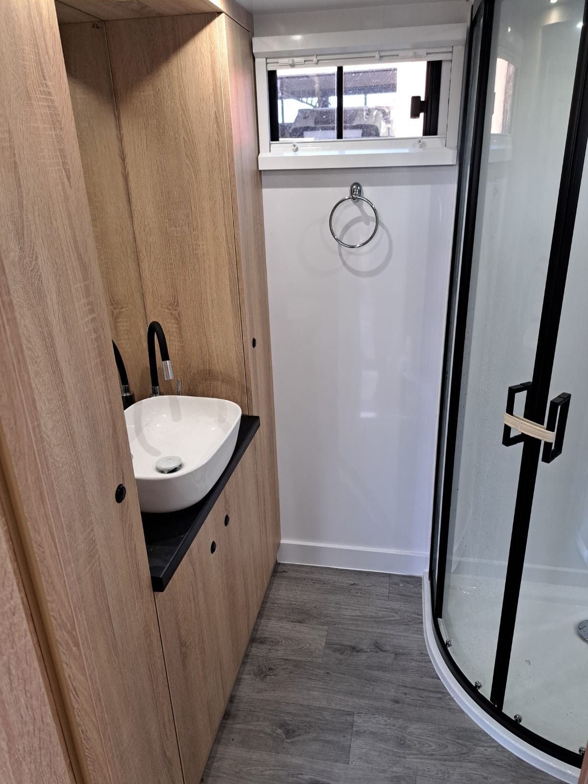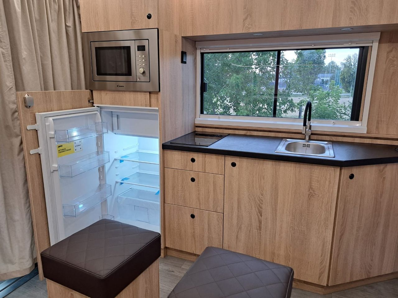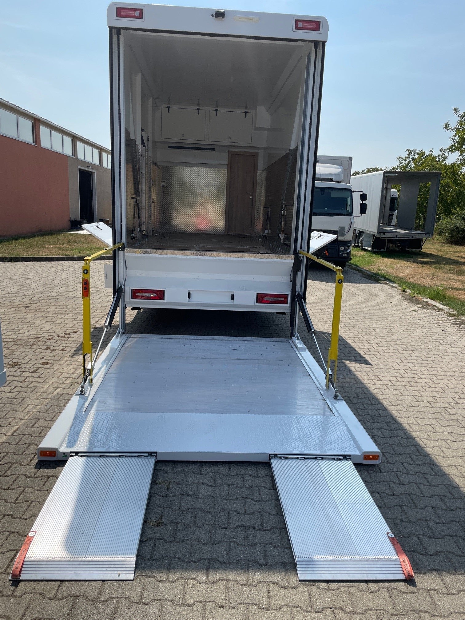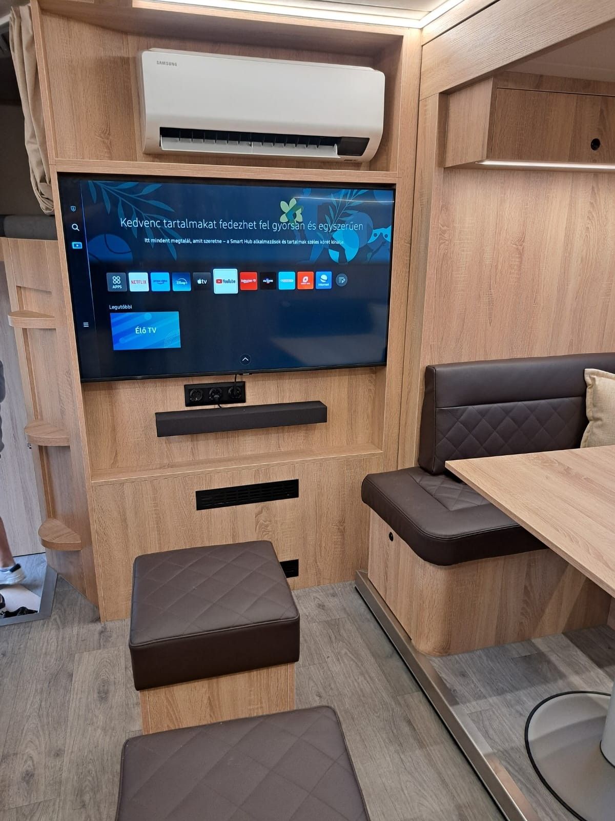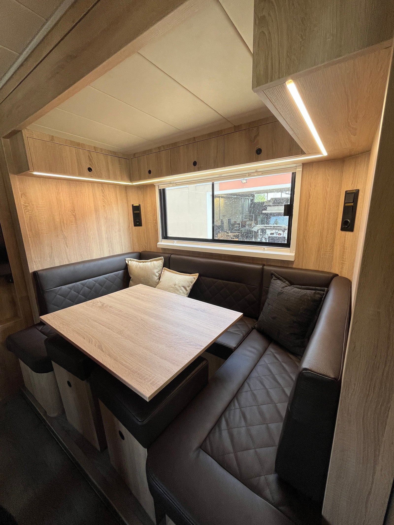 Bilen leveres utstyrt for helårsbruk med fullt kjøkken, registrert for 4 personer. Sengeplass inntil 6 personer. Garasjen er hydraulisk og tar biler inntil 2500kg som gjør at du ikke har noen begrensninger på hva slags personbil / elbil du har med deg. Rullende hytte med både generator, vannbårenvarme og solcellepanel, eller hva du måtte ha for formål.